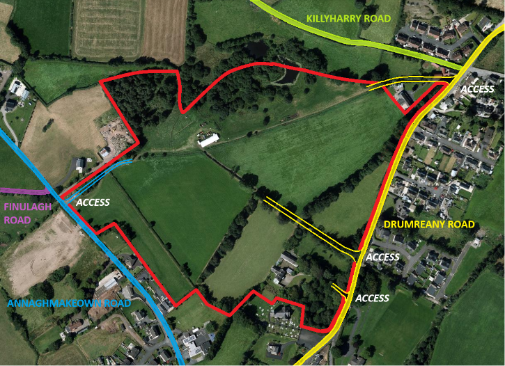 The plot enjoys multiple points of access from Drumreany Road and Annaghmakeown Road. All zones of land (as outlined overleaf) benefit from their own access points;