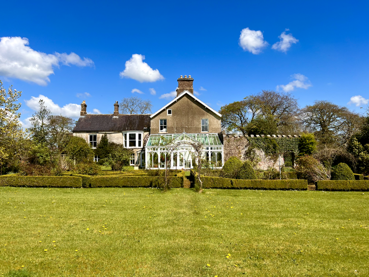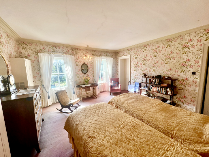 A sweeping, tree-lined drive leads through the mature gardens to the front of the property where the vine-clad front façade makes an imposing first impression. Upon stepping into the front hallway, we are greeted with a grand yet cozy reception area, complete with wood-burning stove and a wealth of original features that are present throughout the property. From there, we are swept through to a grand, dual-aspect dining Room and the glazed orangerie which enjoys vistas over the perfectly manicured walled garden. The ground floor living room allows for a more relaxed reception area for family and guests and as we continue through to the kitchen, utility, workshop and ground floor bedroom to the back of the house, the space and flexibility afforded by this property becomes apparent, with endless well-proportioned spaces that invite exploration.