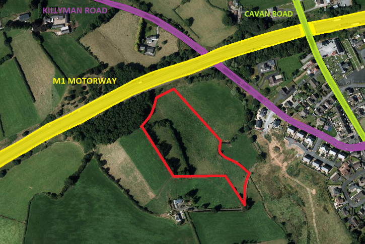 AVAILABLE FOR SALE IS THIS CIRCA 5.5 ACRE LOT OF LAND AT KILLYMAN ROAD, DUNGANNON. PERFECTLY SITUATED CLOSE TO ALL LOCAL ROAD NETWORKS AS WELL AS THE M1 MOTORWAY, THIS PARCEL OF LAND IS ONLY A FEW MINUTES’ DRIVE FROM DUNGANNON TOWN AND ABUTS CURRENT DEVELOPMENT SITES WITHIN KILLYMAN