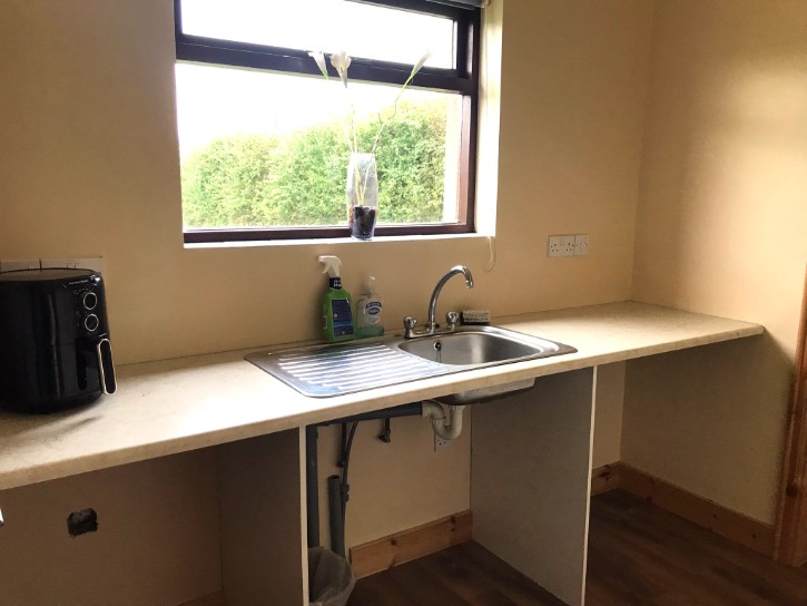 Laminated Flooring, Single Radiator, Rayburn Cooker, Integrated Oven and Hob, Single Drainer Stainless Steel Sink, Range of High and Low Level Units
