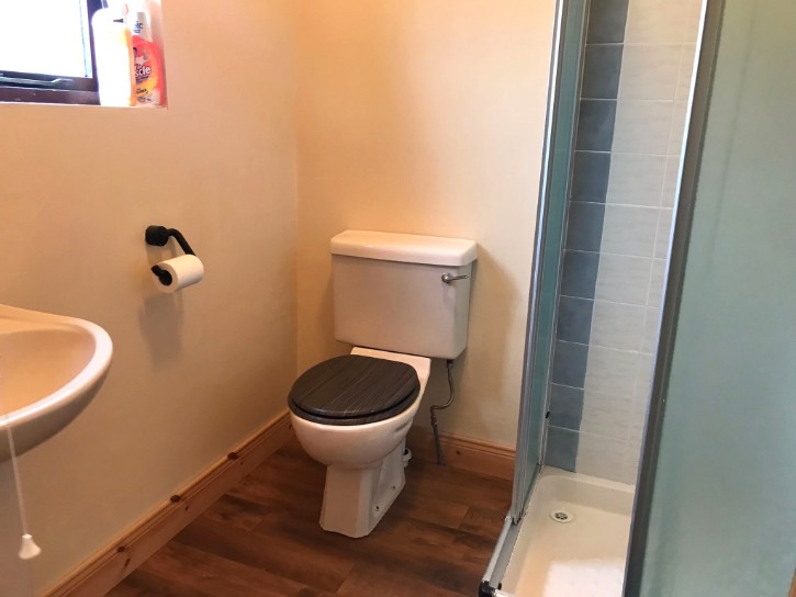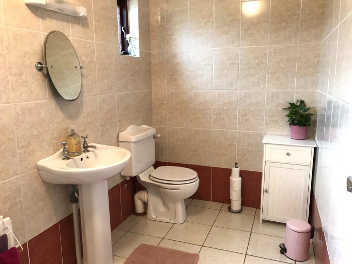 Tiled Flooring, Fully Tiled Walls, Double Radiator, Pedestal with Hand Basin, Electric Shower, Low Flush W/C