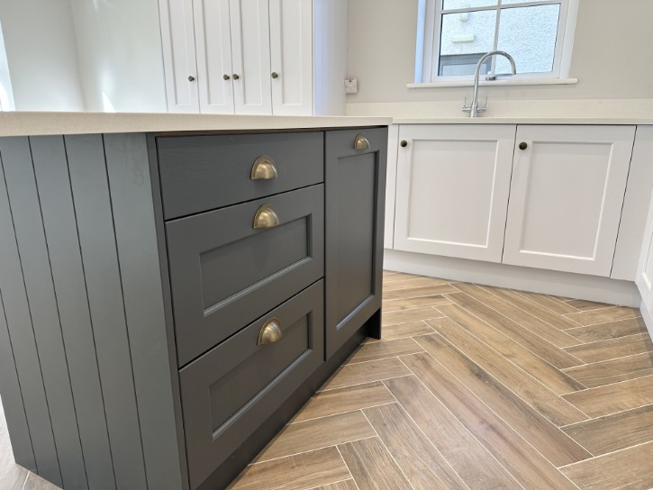 • Free-standing kitchen Island finished in “Farrow & Ball - Downpipe”.