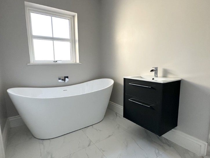 • Modern free-standing bath with wall mounted mixer tap.