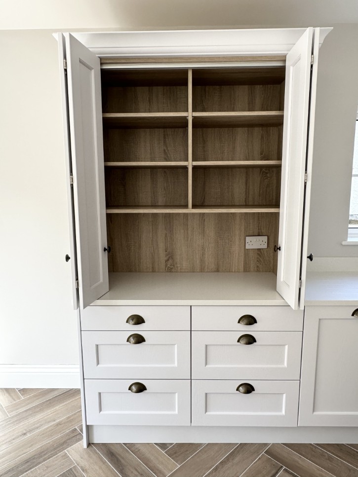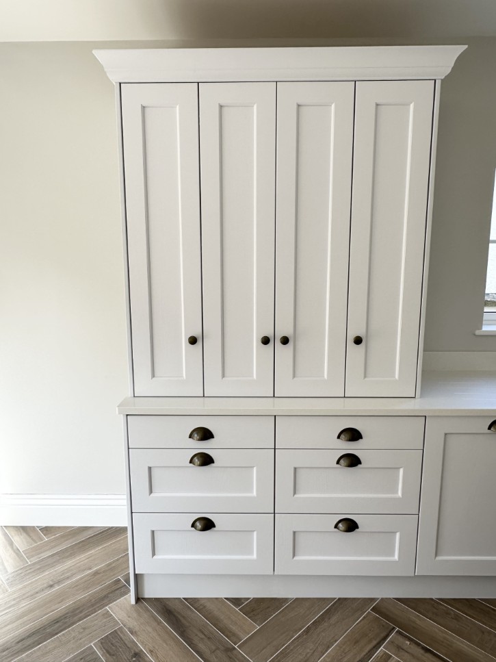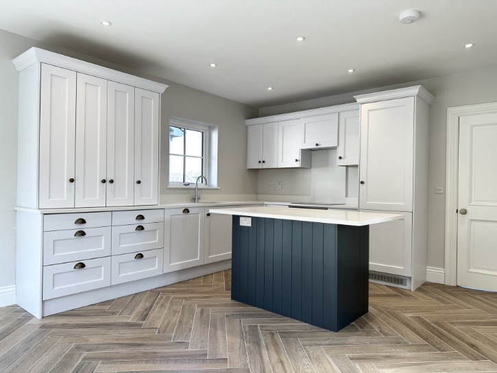 • Hand painted bespoke kitchen, finished in “Zoffany - Architects White”.