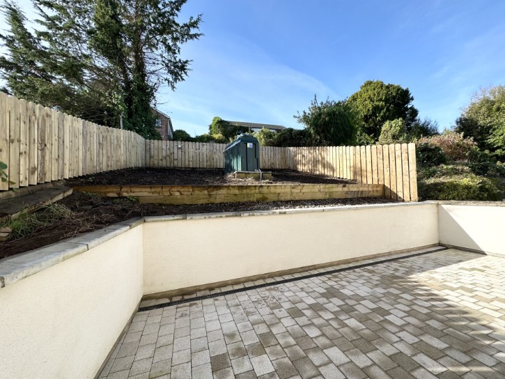 • Silver granite style paving to rear with matching door step.