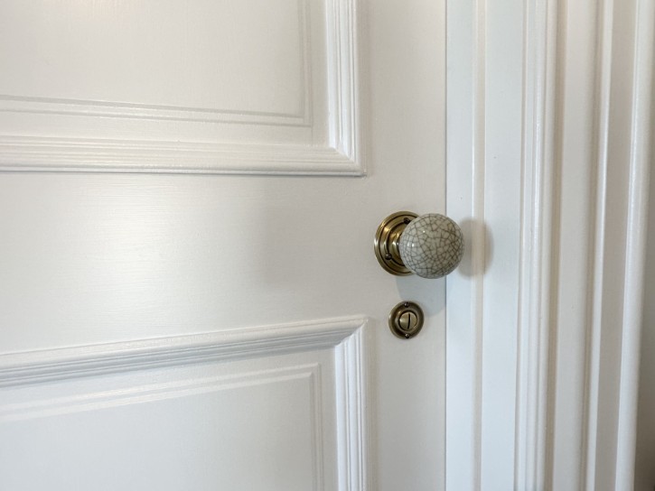 • Painted 2 panel internal doors with antique-brass ironmongery and ceramic style knobs.