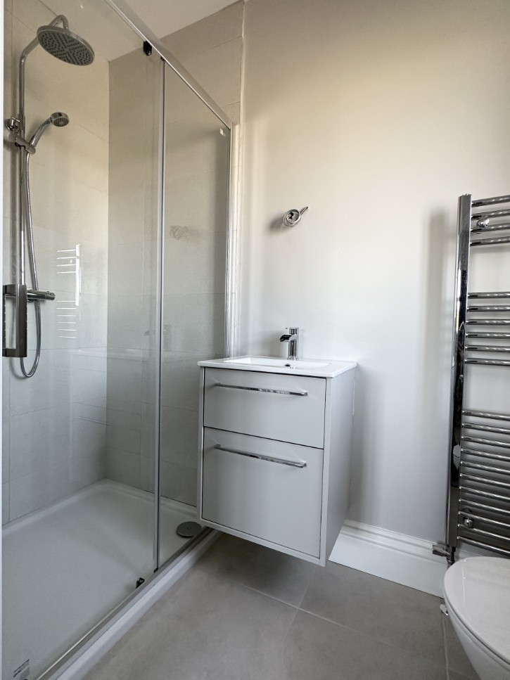 • Master with en-suite including a feature wall mounted vanity unit, thermostatic rain shower, chrome fittings and a heated chrome towel rail.