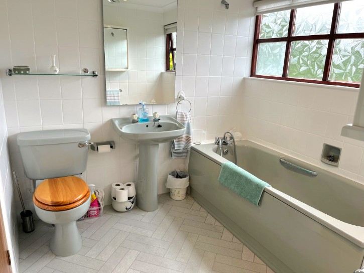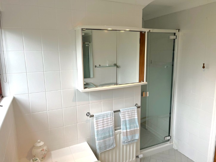 Panel Bath, Pedestal with Hand Basin, Low Flush W/C, Double Radiator, Power Shower, Fully Tiled Walls, Linoleum Flooring