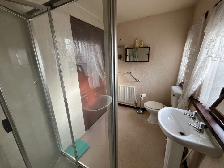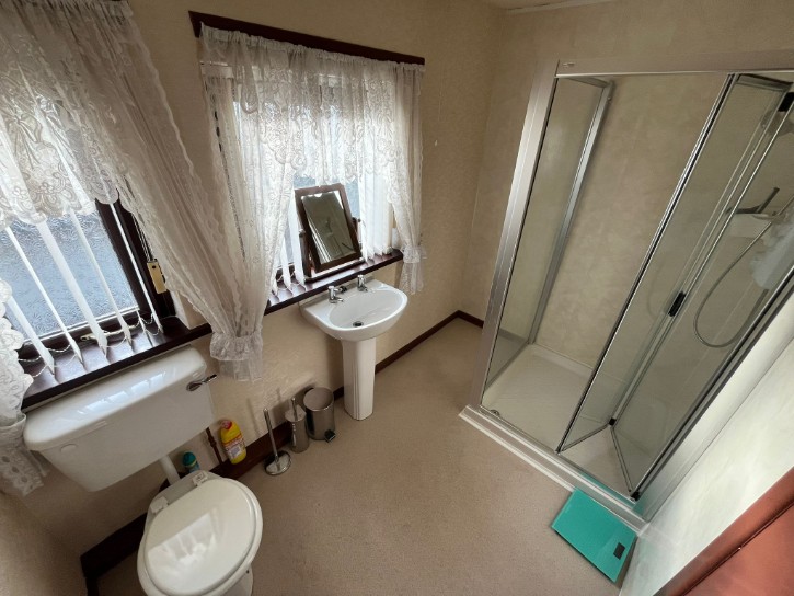 Low Flush W/C, Pedestal with Hand Basin, Shower, Single Radiator