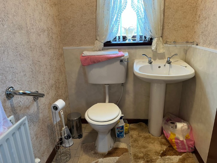 Low Flush W/C, Pedestal with Hand Basin, Double Radiator, Tiled Floor
