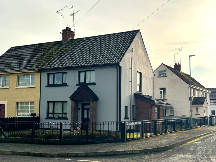 WE ARE DELIGHTED TO PRESENT FOR SALE THIS DECEPTIVELY SPACIOUS 3-BEDROOM PROPERTY SET ON A GENEROUS CORNER PLOT WITHIN AUGHNACLOY’S POPULAR, WELL-ESTABLISHED DEVELOPMENT OF SYDNEY CRESCENT. LOCATED WITHIN WALKING DISTANCE OF THE TOWN CENTRE, THIS PROPERTY IS CLOSE TO ALL LOCAL SCHOOLS, SHOPS AND AMENITIES AND IS WELL-CONNECTED WITH THE MAJOR A4 AND A5 ROAD NETWORKS LEADING TO OMAGH, BALLYGAWLEY AND BEYOND.