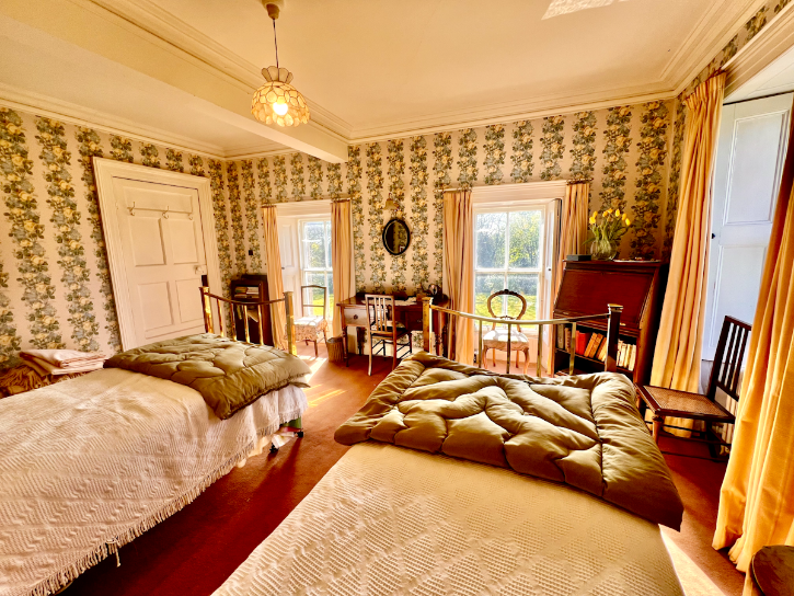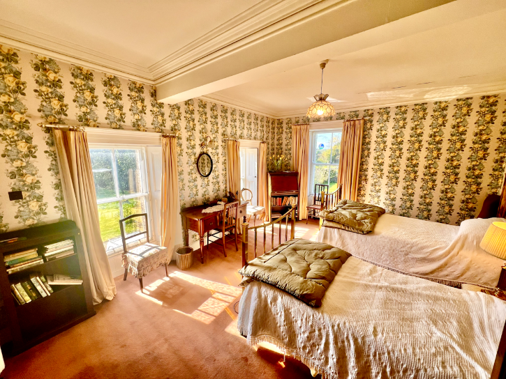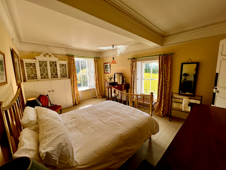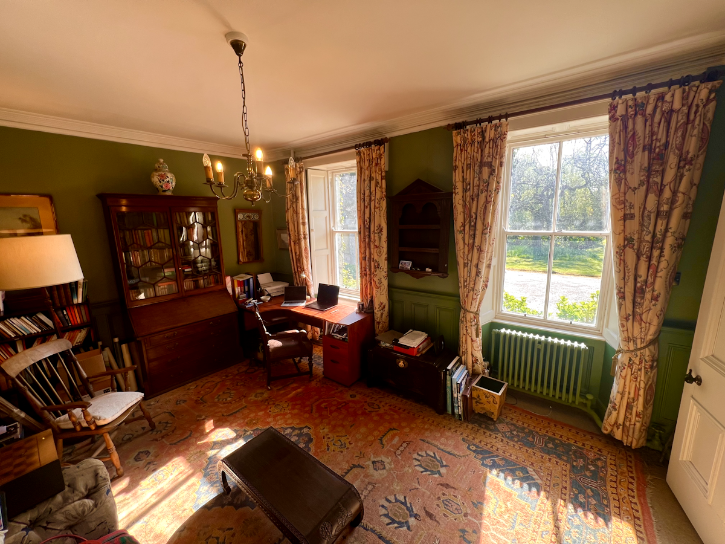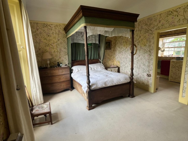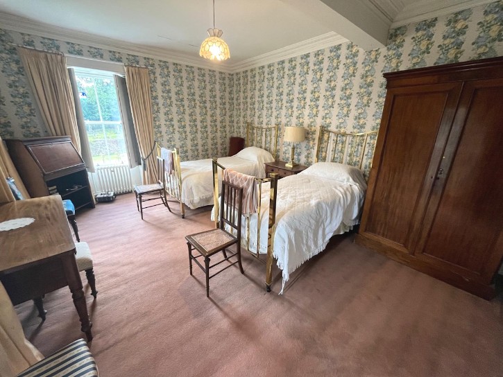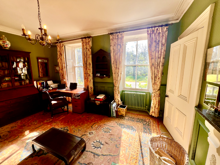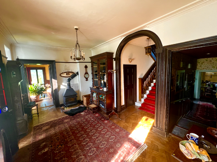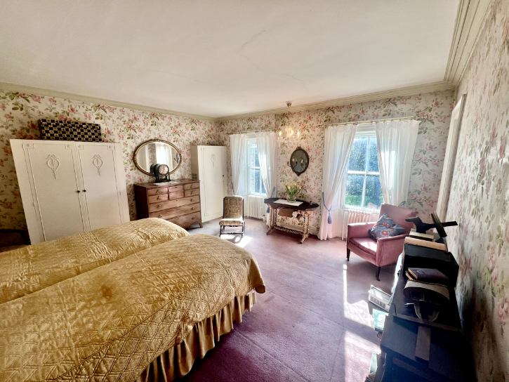 A sweeping, tree-lined drive leads through the mature gardens to the front of the property where the vine-clad front façade makes an imposing first impression. Upon stepping into the front hallway, we are greeted with a grand yet cozy reception area, complete with wood-burning stove and a wealth of original features that are present throughout the property. From there, we are swept through to a grand, dual-aspect dining Room and the glazed orangerie which enjoys vistas over the perfectly manicured walled garden. The ground floor living room allows for a more relaxed reception area for family and guests and as we continue through to the kitchen, utility, workshop and ground floor bedroom to the back of the house, the space and flexibility afforded by this property becomes apparent, with endless well-proportioned spaces that invite exploration.