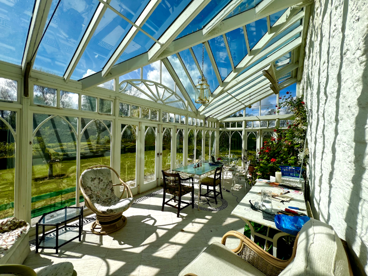Double Aspect Windows, Open Fireplace, Period Cornicing and Ceiling Rose, Double Doors to Glazed Orangerie, Secondary access to Kitchen and Workshop etc.