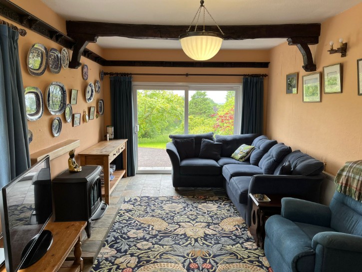 Tiled Floor, Electric Stove, Double Radiator, Sliding Patio Doors, Feature Timber Beams