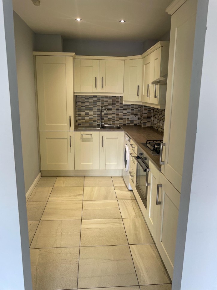 Range of High and Low Level Units, Splash Back Tiling, Tiled Flooring, Integrated Oven and Gas Hob, Integrated Fridge Freezer